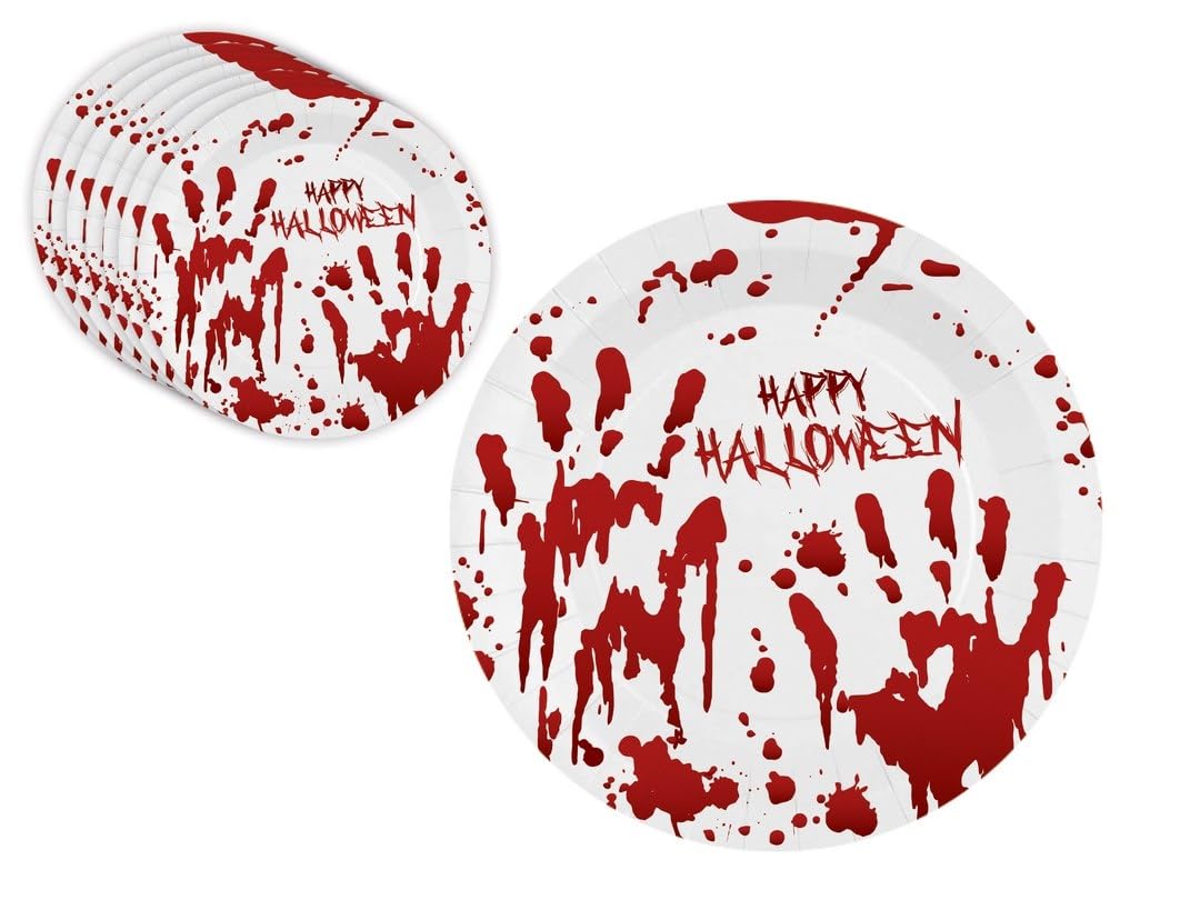 P’tit Clown – Décoration Halloween de Table – Déco Sanglante – Guirlande, Nappe, Serviettes, Asiettes, Gobelets – pour Fête à Thème, Soirée ou Buffet (22 x 22 cm, Assiette Halloween sanglante x8)