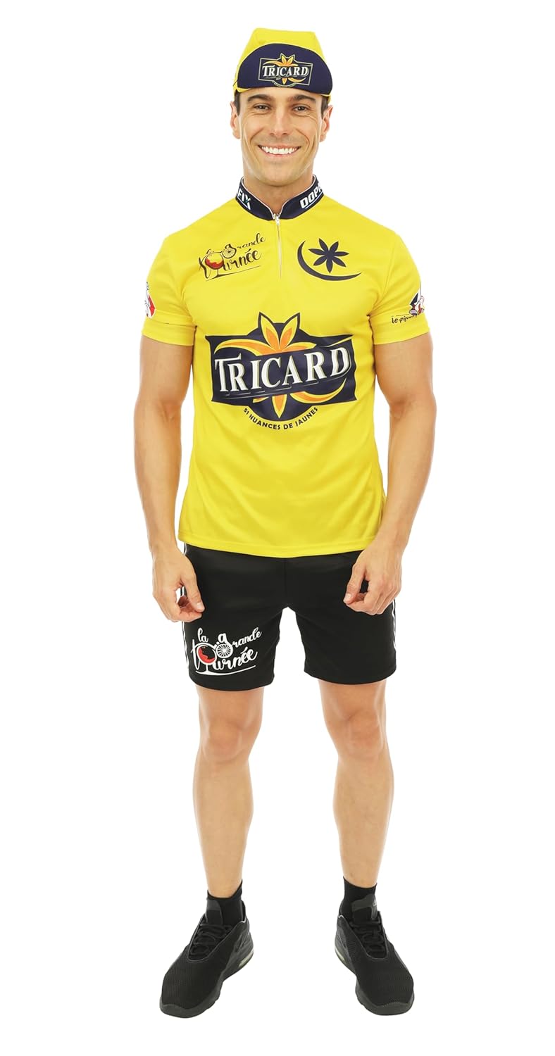 P’TIT CLOWN – Déguisement Cycliste Adulte – Costume Humoristique – T-shirt, Short, Casquette – Parfait pour Tenue Carnaval, Fêtes Costumées, Soirées à Thème, Cosplay – Polyester (Jaune, S-M)