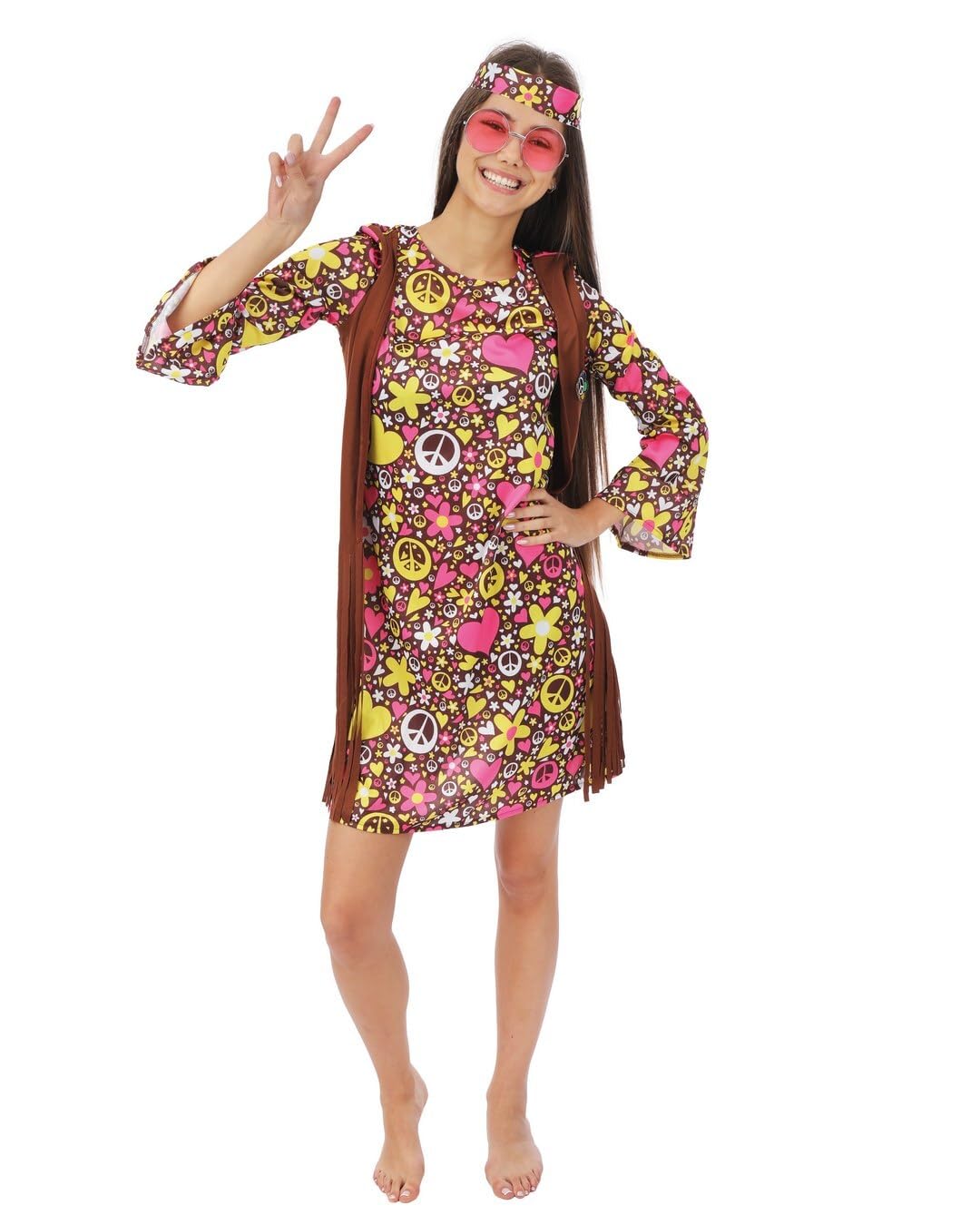 P’TIT CLOWN – Déguisement Hippie Femme – Costume Bohème Adulte – Flower Power – Peace and Love – Tenue Carnaval, Festival et Fêtes à Thème – Années 70 – Woodstock