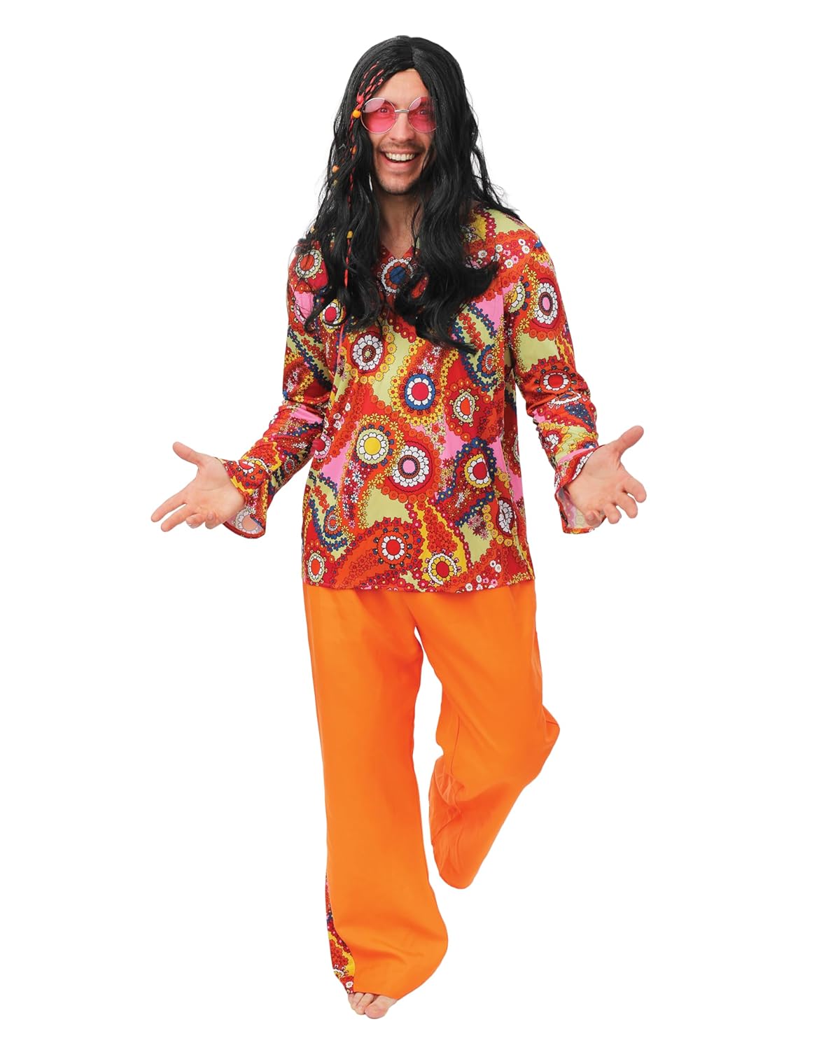 P’TIT ClOWN – Déguisement Hippie Homme – Costume Adulte Carnaval, Fêtes Costumées, Soirées à Thème, Années 70, Woodstock, Disco, Peace and Love, Festival,Déguisement Retro – Orange