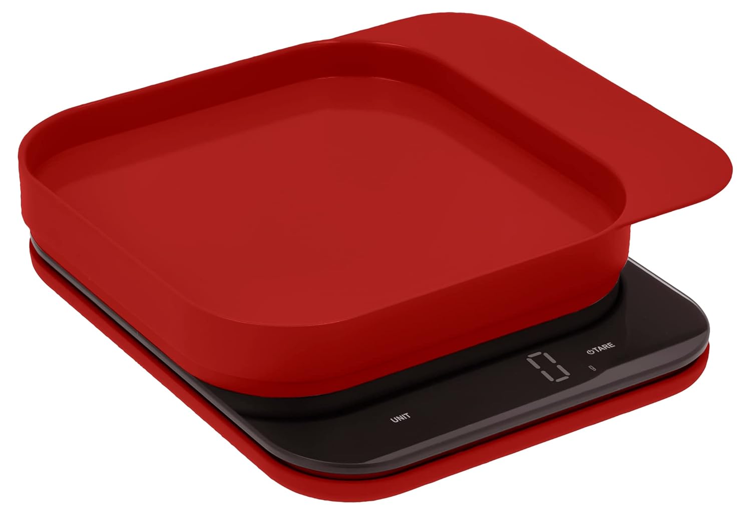 Rosti Mensura Balance de Cuisine – Pèse Aliment – Avec Bol et Fonction Tare – 16,5 x 20,3 x 3,5 cm, Rouge
