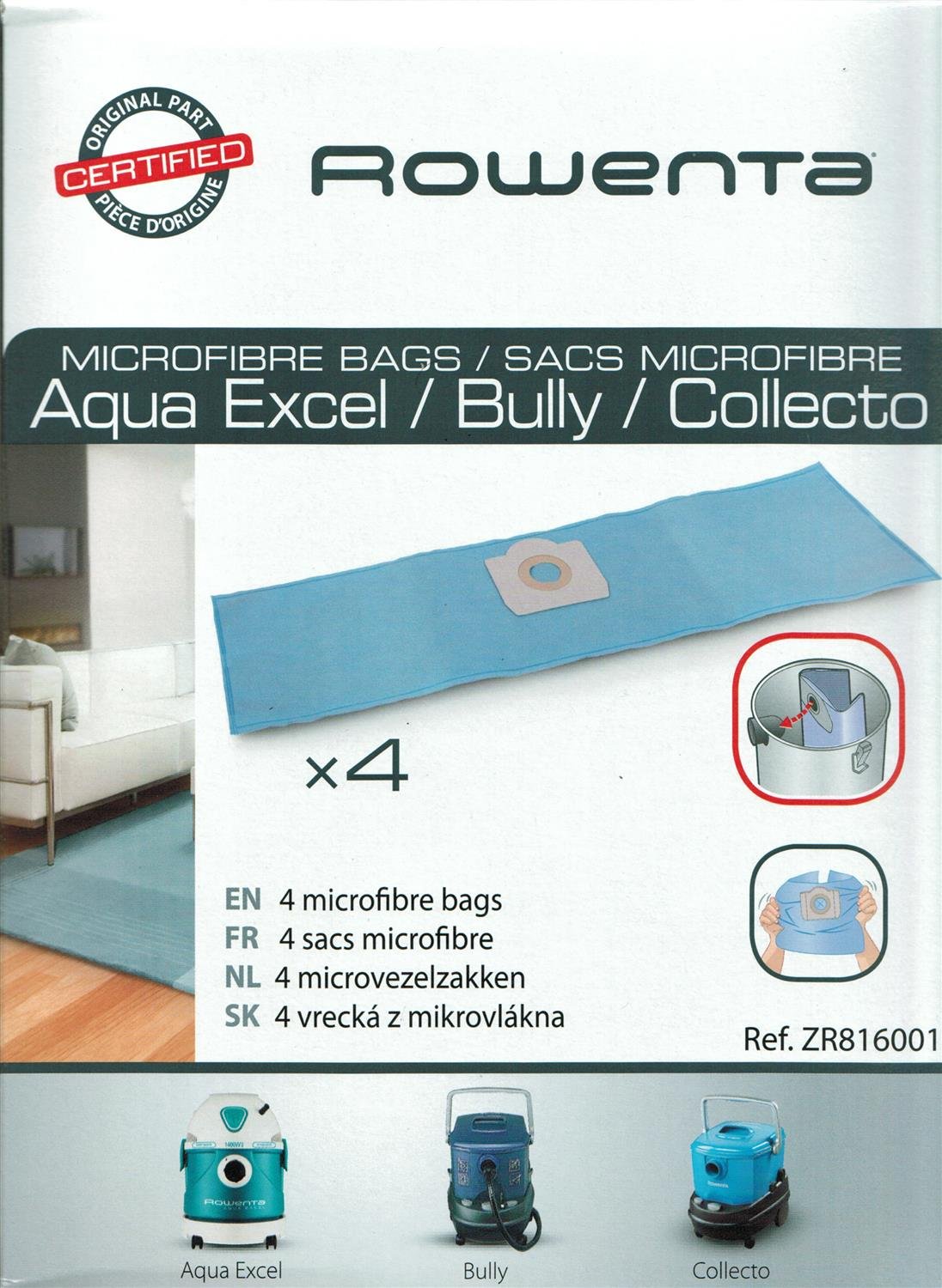 Rowenta ZR816001 Boîte de 4 Sacs Microfibres pour Collecto & Wet & Dry 19L