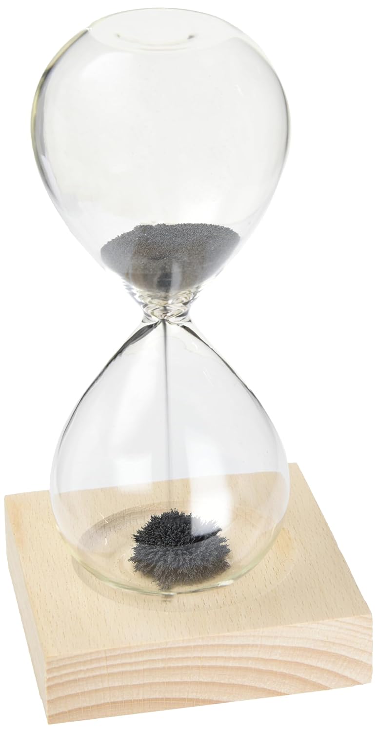 Sablier avec Sable magnétique, Hauteur env. 16 cm, autonomie 1 Minute, Base en Bois avec Aimant