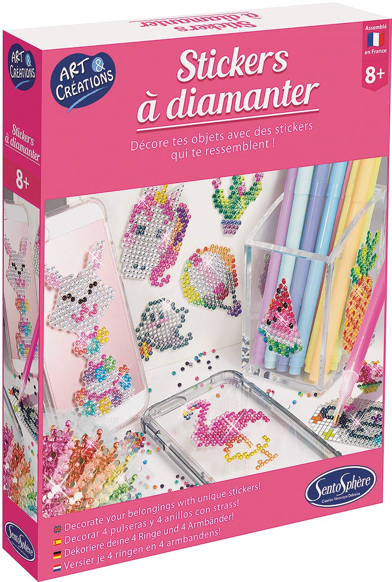 Sentosphère – Sticker à diamanter – Coffret créatif pour enfants – Dès 8 ans – Création de stickers brillants avec strass colorés – Kit complet avec crayon, cire, plateau, et vernis – 32540
