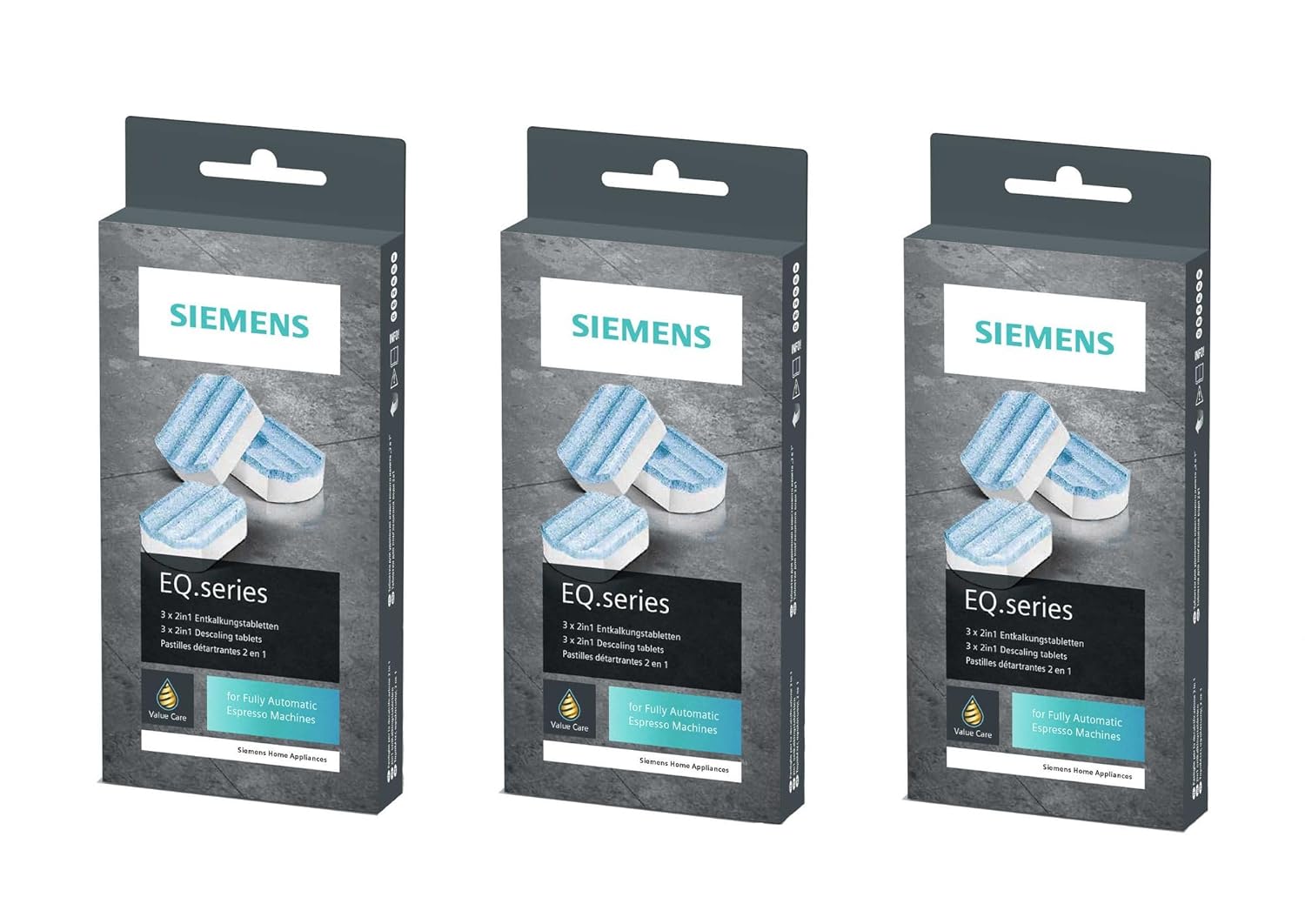 Siemens TZ80002 Lot de 3 paquets de pastilles détartrantes 2 en 1 pour machines à café Siemens gamme EQ