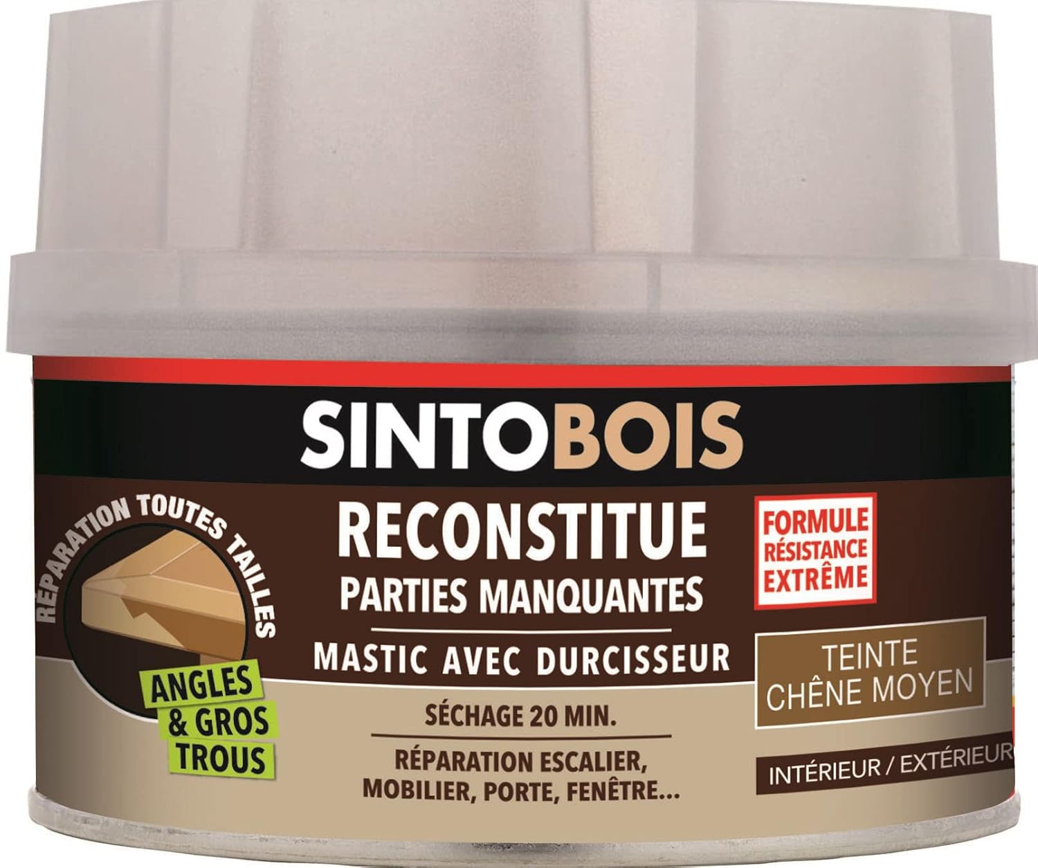 SINTOBOIS – Pâte à Bois – Angles et Gros Trous – Reconstitue les Parties Manquantes – Intérieur Extérieur – Haute Résistance & Adhérence – Sec en 20min – Chêne Moyen – Technique Professionnelle – 550g
