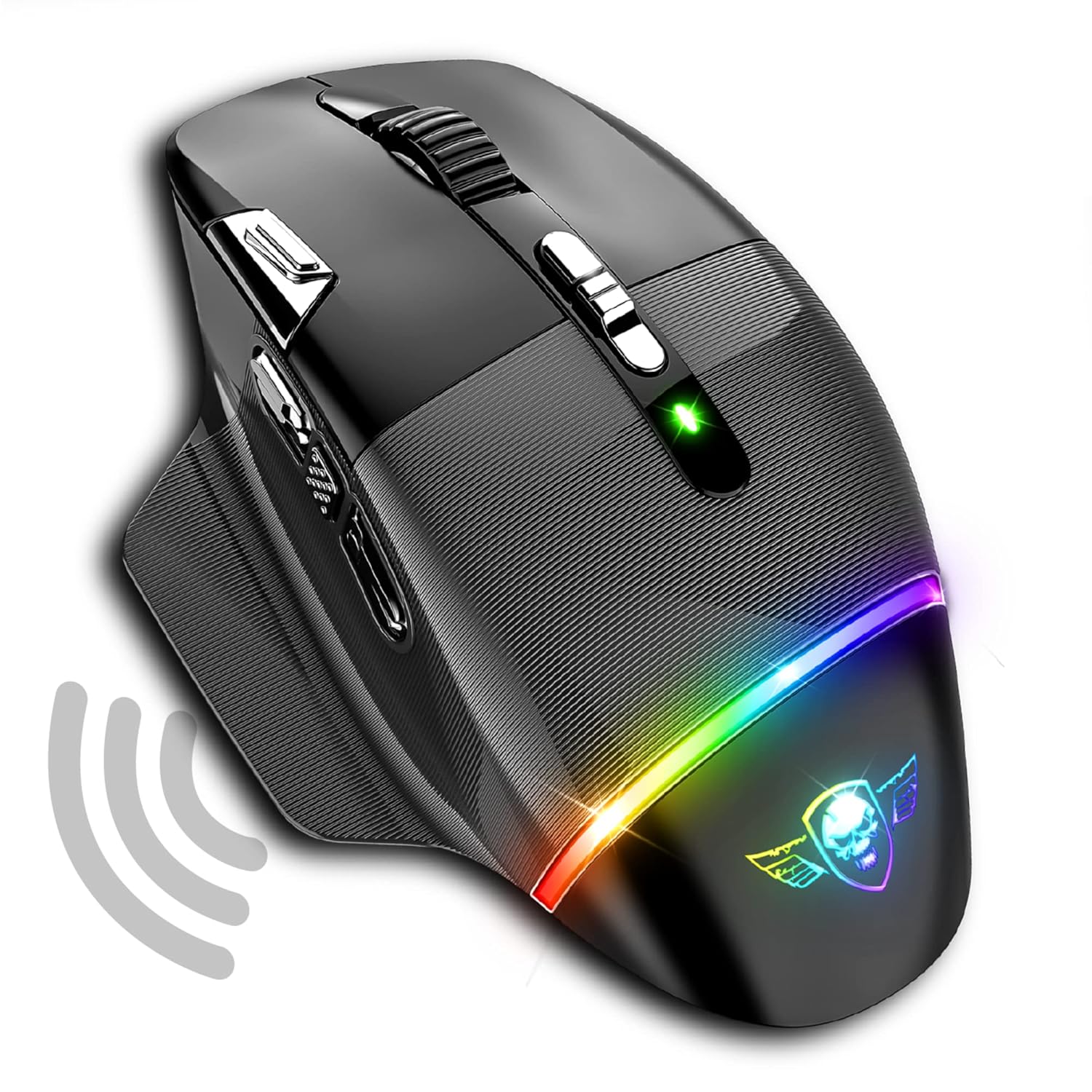 Spirit Of Gamer XPERT M800, Souris Gamer Sans Fil Rechargeable, 9 Boutons Programmables, Capteur Optique 10 000 DPI, 11 effets de Rétroéclairage RGB, Souris Ergonomique avec Repose Pouce Pour PC Gamer