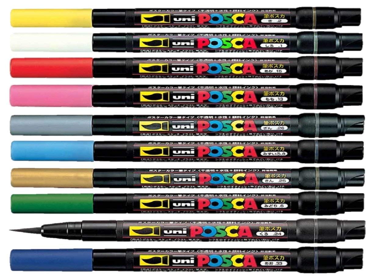 Uni Posca PCF-350 Assortiment de 10 marqueurs à peinture Pour le verre / plastique / bois / métal / tissu 10 couleurs Touffe de 0,1-10 mm