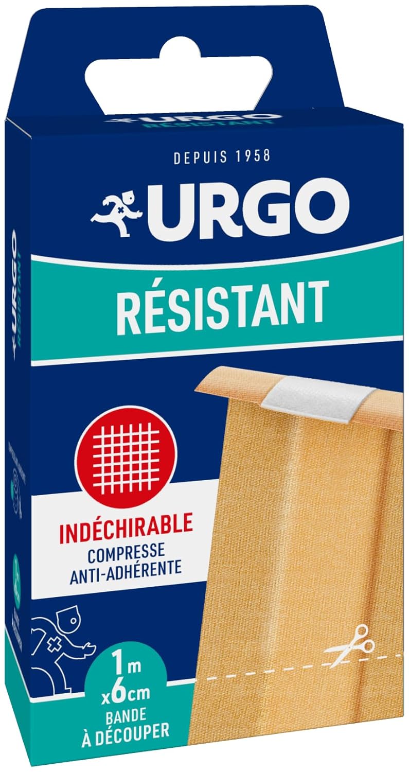 Urgo – Bande à Découper Résistant – Bande En Tissu – Compresse Anti-adhérente – 1m X 6cm