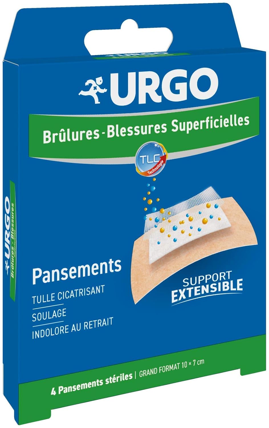 Urgo – Pansements Brûlures – Blessures superficielles – Tulle lipido-colloïde – Grand format, x4