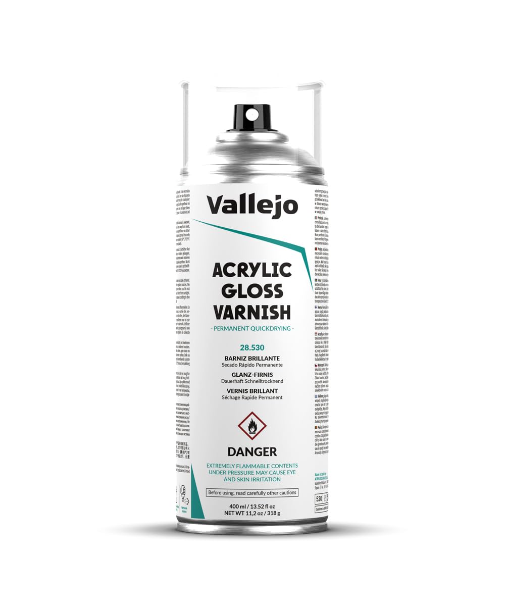 Vallejo Vernis Acrylique Brillant 400 Ml – Protection Durable et Flexible pour Peintures Acryliques et Huiles – Vernis Transparent en Spray
