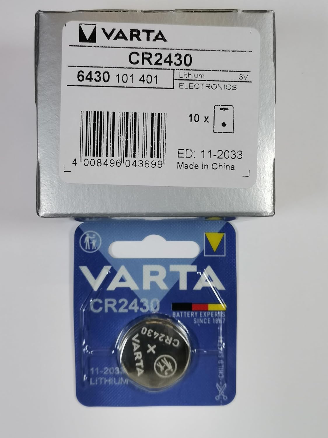 VARTA Lot de 10 Piles Bouton Lithium Electronics CR2430, 3 Volt