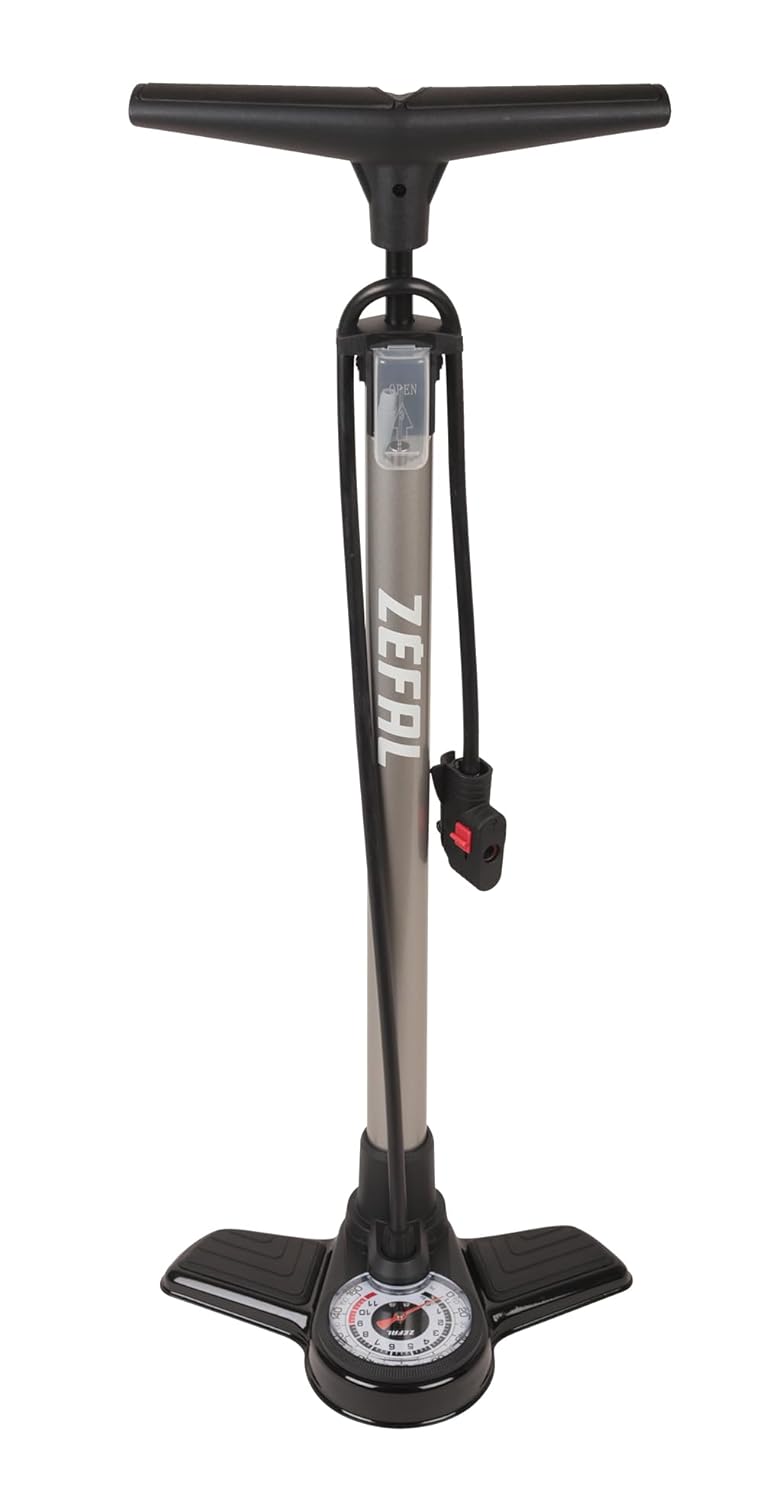 ZEFAL Profil Max FP20 – Pompe à pied vélo – Manomètre et Raccord Intuitif Z-Switch, Argent